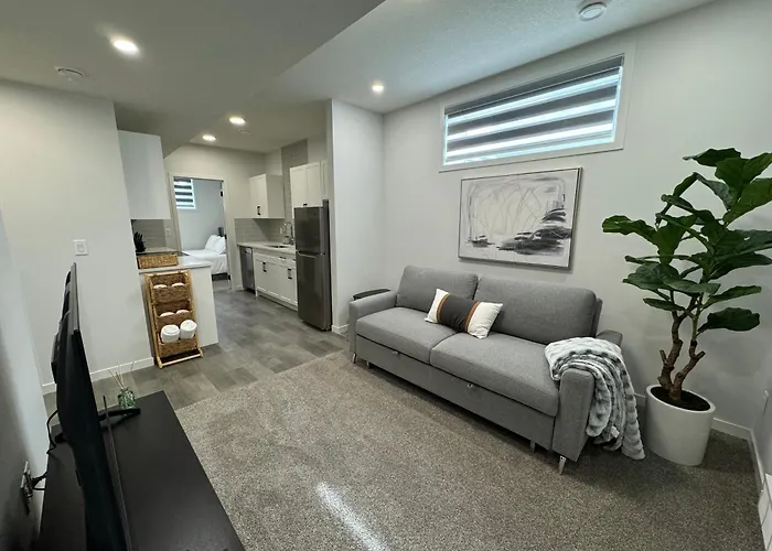 Die Chic & Cozy 2-Br Suite At Glacier Ridge Nw YYC in YYC liegt 20 km vom Flughafen Calgary entfernt. Diese 1-Zimmer-Apartments bietet moderne Annehmlichkeiten wie WLAN und Parkplätze für Autoreisende.